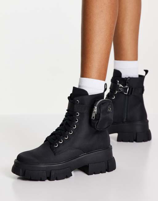 Steve Madden Tanker P Chunky Lace Up Boots In Black Leather Asos